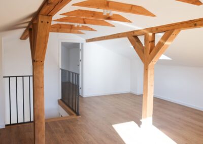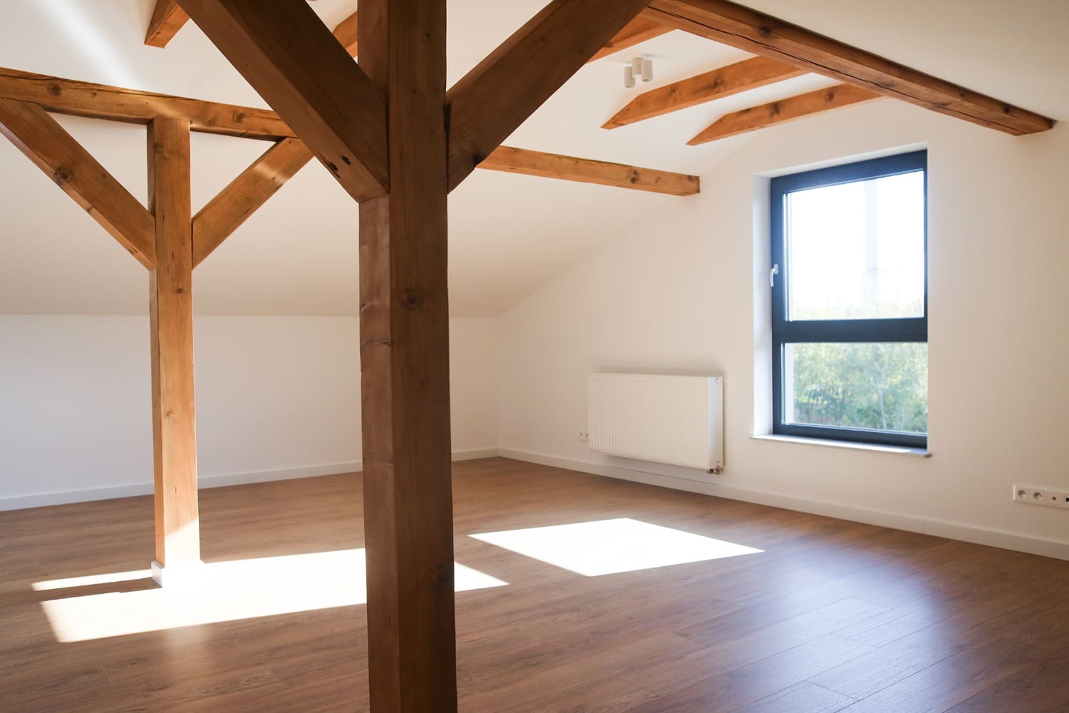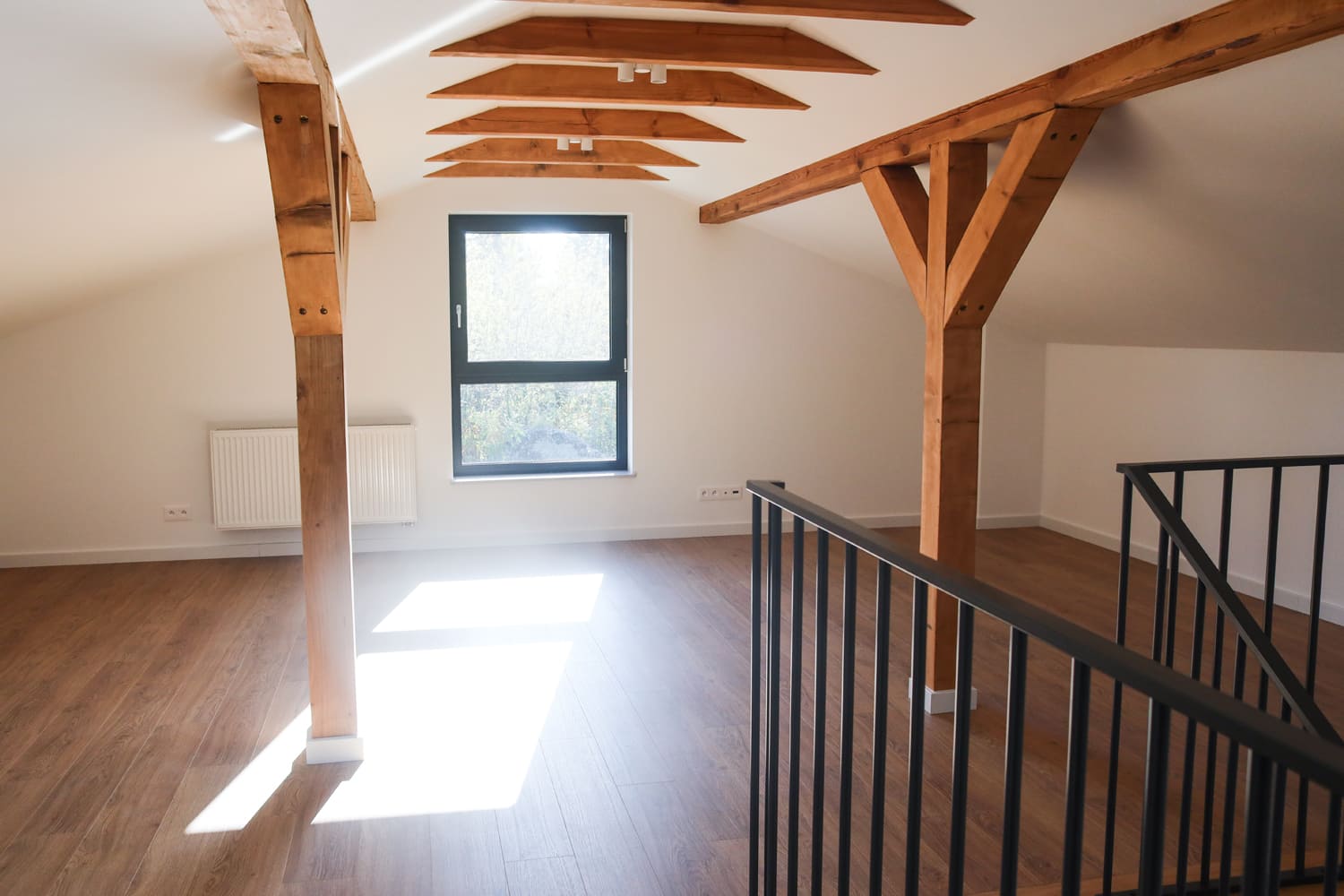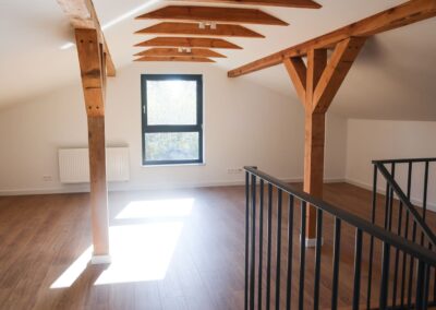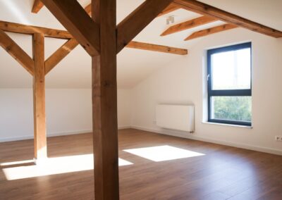 Poddasze to otwarta przestrzeń, którą można dostosować do własnych potrzeb – świetnie sprawdzi się jako dodatkowa łazienka, pralnia lub pokój rekreacyjny (przygotowane instalacje).